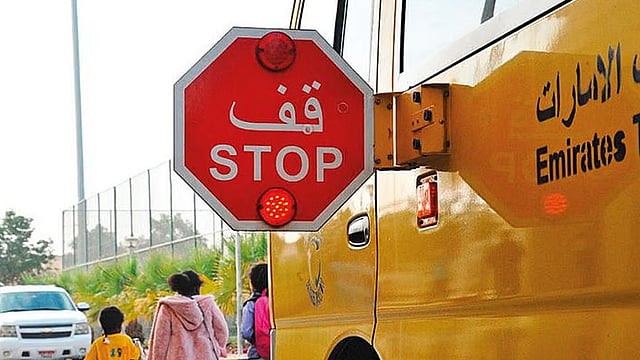 രണ്ട് വശങ്ങളിലേക്കും ഗതാഗതമുള്ള റോഡാണെങ്കിൽ, ബസ് നിൽക്കുന്ന വശത്തെയും എതിർവശത്തെയും വാഹനങ്ങൾക്ക് ഈ നിയമം ബാധകമാണ്. വിദ്യാർഥികൾ സുരക്ഷിതമായി ഇറങ്ങുകയോ കയറുകയോ ചെയ്യുന്നുണ്ടെന്ന് ഉറപ്പുവരുത്താൻ ബസ് ഡ്രൈവർമാർ കൃത്യമായി 'സ്റ്റോപ്പ്' സിഗ്നൽ ഉപയോഗിക്കണം. ഇതിൽ വീഴ്ച വരുത്തുന്ന ബസ് ഡ്രൈവർമാർക്ക് 500 ദിർഹം പിഴയും 6 ബ്ലാക്ക് പോയിന്റും ശിക്ഷ ലഭിക്കും. സ്കൂൾ മേഖലകളിൽ ഡ്രൈവർമാർ വേഗത കുറയ്ക്കണമെന്നും ട്രാഫിക് നിയമങ്ങൾ പാലിക്കണമെന്നും പൊലീസ് അറിയിച്ചു.