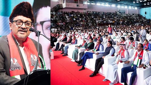 സ്വാഗത സംഘം കമ്മിറ്റി ചെയർമാൻ ഡോ. അൻവർ അമീൻ ചേലാട്ട് അധ്യക്ഷത വഹിച്ചു. ദുബായിലെ ഇന്ത്യൻ കോൺസുൽ ജനറൽ സതിഷ് കുമാർ ശിവൻ, മുസ്ലിം ലീഗ് ദേശീയ ജനറൽ സെക്രട്ടറി പി കെ കുഞ്ഞാലിക്കുട്ടി, സിഡിഎ സോഷ്യൽ റെഗുലേഷൻ ഡിപ്പാർട്ടമെന്റ് ഡയറക്ടർ മുഹമ്മദ് അൽ മുഹൈരി, മുസ്ലിം ലീഗ് സംസ്ഥാന ജനറൽ സെക്രട്ടറി അഡ്വ. പി എം എ സലാം, കെഎംസിസി ഉപദേശക സമിതി ചെയർമാൻ ശംസുദ്ധീൻ ബിൻ മുഹ്യുദ്ധീൻ എന്നിവർ പ്രസംഗിച്ചു. ജനറൽ കൺവീനർ യഹ്യ തളങ്കര സ്വാഗതവും ഇസ്മായിൽ ഏറാമല നന്ദിയും പറഞ്ഞു.