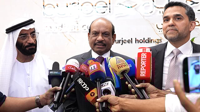 എം.എ. യൂസഫ് അലി ദുബായിൽ മാധ്യമങ്ങളോടു സംസാരിക്കുന്നു.