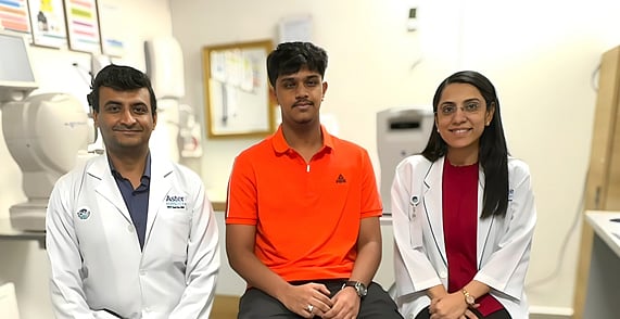 ദുബായ്: സ്കൂളിൽ പേന കണ്ണിൽ തറച്ച് ഗുരുതരമായി പരുക്കേൽക്കുകയും കാഴ്ച ശക്തി തകരാറിലാകുകയും ചെയ്ത മലയാളി വിദ്യാർഥിക്ക് മൂന്ന് മാസങ്ങൾക്കുള്ളിൽ നടത്തിയ മൂന്ന് ശസ്ത്ര ക്രിയകളിലൂടെ കാഴ്ച ശക്തി തിരികെ നൽകി ദുബായ് മൻഖൂൽ ആസ്റ്റർ ആശുപത്രിയിലെ വിദഗ്ധ ഡോക്ടർമാർ. 15 വയസുള്ള പ്ലസ് വൺ വിദ്യാർഥി ദിക്ഷിത് കൊട്ടിയാട്ടിൽ അനൂപിനെയാണ് കണ്ണിന് ഗുരുതരമായി പരുക്കേറ്റ നിലയിൽ ആശുപത്രിയിൽ എത്തിച്ചത്.
