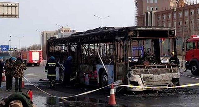 ഷാങ്സിയിലെ ഹോഹ്ഹോട്ട്-ബെയ്ഹായ് എക്സ്പ്രസ്വേയിൽ പുലർച്ചെ 2.37നാണ് അപകടമുണ്ടായതെന്ന് പ്രാദേശിക അധികൃതർ അറിയിച്ചു. 51 യാത്രക്കാരാണ് ബസിലുണ്ടായിരുന്നത്. പരുക്കേറ്റവരെ ആശുപത്രികളിൽ പ്രവേശിപ്പിച്ചു. ഇവരുടെ ആരോഗ്യനില സംബന്ധിച്ച വിശദാംശങ്ങളൊന്നും അധികൃതർ പുറത്തുവിട്ടിട്ടില്ല.