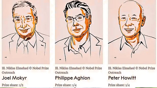 സാമ്പത്തികശാസ്ത്ര നൊബേൽ പങ്കിട്ട് ജോയൽ മൊകീറും ഫിലിപ്പ് അഗിയോളും പീറ്റർ ഹോവിറ്റും
