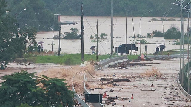 ബ്രസീലിയ: പ്രളയത്തിൽ വിറങ്ങളിച്ച് തെക്കൻ ബ്രസീൽ. കനത്ത വെള്ളപ്പൊക്കത്തിലും മണ്ണിടിച്ചിലിലും കൊടുങ്കാറ്റിലും ബ്രസീലില് മരിച്ചവരുടെ എണ്ണം 60 ആയി. 70,000ലധികം ആളുകള് സ്വന്തം വീടുകളില് നിന്ന് മാറി താമസിച്ചതായി അന്താരാഷ്ട്ര മാധ്യമങ്ങള് റിപ്പോര്ട്ട് ചെയ്യുന്നത്. 70ലേറെ പേരെ വെള്ളപ്പൊക്കത്തില് കാണാതായി. 74 ഓളം പേർ പ്രളത്തിൽ പരുക്കേറ്റ് ചികിത്സയിൽ കഴിയുകയാണ്.