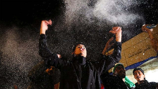 ഗാസയിൽ വെടിനിർത്തൽ കരാർ യാഥാർഥ്യമായത് ആഘോഷിക്കുന്ന പലസ്തീൻകാർ.