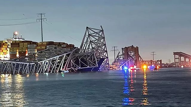 ബാൾട്ടിമോർ: യുഎസിലെ ബാൾട്ടിമോറിൽ പടാപ്സ്കോ നദിക്കു കുറുകെയുള്ള കൂറ്റൻ പാലം കണ്ടെയ്നർ കപ്പലിടിച്ച് തകർന്നു. പാലത്തിലുണ്ടായിരുന്ന ഏതാനും പേരും നിരവധി വാഹനങ്ങളും നദിയിൽ വീണു. 7 പേർക്കായി തെരച്ചിൽ തുടരുകയാണെന്ന് ബാൾട്ടിമോർ അഗ്നി രക്ഷാ വിഭാഗത്തെ ഉദ്ധരിച്ച് അന്താരാഷ്ട്ര മാധ്യമങ്ങൾ റിപ്പോർട്ട് ചെയ്തു. കപ്പലിലെ 22 ജീവനക്കാര് ഇന്ത്യക്കാരാണ്.