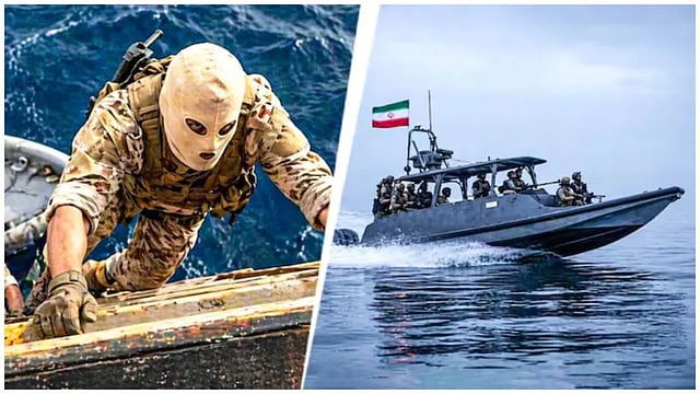 മുഖം മൂടിയണിഞ്ഞ് ഇറാനിയൻ സൈനികർ ഇന്ത്യൻ കപ്പലിലേയ്ക്ക്