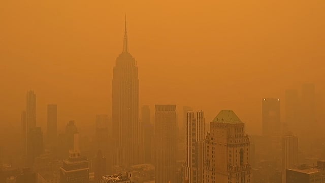 ഹൂസ്റ്റൺ: കാനഡയിൽ കാട്ടു തീ പടർന്നു പിടിച്ചതിനു പിന്നാലെ പുകയിൽ മുങ്ങി ന്യൂയോർക്ക് നഗരം. നഗരത്തിലെ വായു മലിനീകരണം വലിയ രീതിയിൽ ഉയർന്നതായാണ് കണക്കുകൾ സൂചിപ്പിക്കുന്നത്. ബുധനാഴ്ച മുതലേ നഗരം ഏതാണ്ട് പൂർണമായും പുക നിറഞ്ഞ അവസ്ഥയിലായിരുന്നു. ഈ ആഴ്ച മുഴുവൻ ഈ സ്ഥിതി തുടരുമെന്നാണ് വിദഗ്ധർ പ്രവചിക്കുന്നത്.