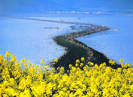 ദക്ഷിണ കൊറിയയിലെ തെക്കു പടിഞ്ഞാറൻ തീരത്തുള്ള ജിൻഡോ ദ്വീപിന് ഒരു പ്രത്യേകതയുണ്ട്. ഇവിടുത്തെ ഹോയ്-ഡോ ഗ്രാമത്തിനു സമീപമുള്ള മോ-ഡോ എന്ന ചെറിയ ദ്വീപുമായി ബന്ധിപ്പിക്കുന്ന പ്രദേശത്ത് കടൽ വഴി മാറുന്ന ഒരു പ്രതിഭാസമുണ്ട് ! ഇങ്ങനെ കടൽ വഴി മാറുന്നതിന് ബൈബിളിലെ ചെങ്കടൽ പിളർത്തിയ മോശയുടെ അത്ഭുതത്തോട് സാമ്യമുള്ളതിനാൽ ജനങ്ങൾ സ്നേഹാദരങ്ങളോടെ "മോശയുടെ അത്ഭുതം'(Moses' Miracle) എന്നാണ് ഈ പ്രതിഭാസത്തെ വിളിക്കുന്നത്. ഇതിനു പിന്നിലൊരു ശാസ്ത്രീയ കാരണമുണ്ടു കേട്ടോ. ഭൂമിയും ചന്ദ്രനും സൂര്യനും ഒരേ രേഖയിൽ വരുന്ന പൗർണമിയോട് അനുബന്ധിച്ചുള്ള വേലിയേറ്റ സമയത്താണ് (Spring Tide) ഏറ്റവും ശക്തമായ വേലിയേറ്റം ഇവിടെ സംഭവിക്കുന്നത്.