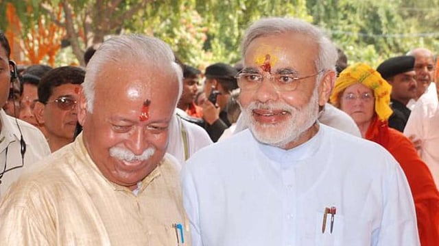 ആർഎസ്എസ് മേധാവി മോഹൻ ഭാഗവതും പ്രധാനമന്ത്രി നരേന്ദ്ര മോദിയും.