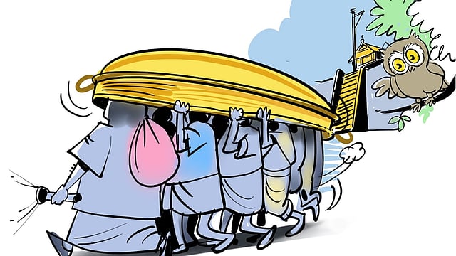 ഒന്നാമൻ: "പക്ഷേ, ഈശ്വരനെന്തിനാണ് സ്വർണം? അതെല്ലാം മനുഷ്യർക്കു വേണ്ടിയുള്ളതല്ലേ?'
