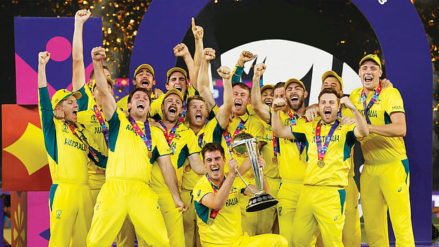 ഇന്ത്യയുടെ മികച്ച ബൗളിങ്ങിനു മുന്നില് പതറാതെ പോരാടി വിജയം പിടിച്ചെടുക്കുകയായിരുന്നു ഓസീസ്. ഓസ്ട്രേലിയയുടെ ആറാം ലോകകിരീടമാണിത്. ആദ്യമായാണ് ഒരു പേസ് ബൗളര് നയിച്ച ഓസ്ട്രേലിയ ലോകകിരീടത്തില് മുത്തമിടുന്നത്. ഏഴോവറില് മൂന്നിന് 47 എന്ന നിലയില് തകര്ന്ന ശേഷമായിരുന്നു ഓസീസിന്റെ തിരിച്ചുവരവ്. ട്രാവിസ് ഹെഡ് 120 പന്തില് 15 ബൗണ്ടറിയുടെയും മൂന്ന് സിക്സിന്റെയും അകമ്പടിയില് 137 റണ്സെടുത്തു. ലാബുഷെയ്ന് 110 പന്തില് നാല് ബൗണ്ടറിയുടെ അകമ്പടിയില് റണ്സെടുത്ത് ഹെഡ്ഡിനു മികച്ച പിന്തുണ നല്കി. ഇന്ത്യക്കു വേണ്ടി പതിവു പോലെ രോഹിത് ശര്മ (31 പന്തില് 47) മികച്ച തുടക്കം നല്കി. വിരാട് കോലി 54ഉം കെ.എല്. രാഹുല് 66ഉം റണ്സ് നേടി. ബൗളിങ്ങില് ഓസ്ട്രേലിയ്ക്കായി മൂന്നു വിക്കറ്റെടുത്ത മിച്ചല് സ്റ്റാര്ക്കും രണ്ടു വിക്കറ്റ് വീതം നേടിയ നായകന് കമിന്സും ജോഷ് ഹെയ്സല്വുഡും തിളങ്ങി. ഇന്ത്യക്കായി ബുമ്ര രണ്ട് വിക്കറ്റും ഷമിയും സിറാജും ഓരോ വിക്കറ്റും നേടി.