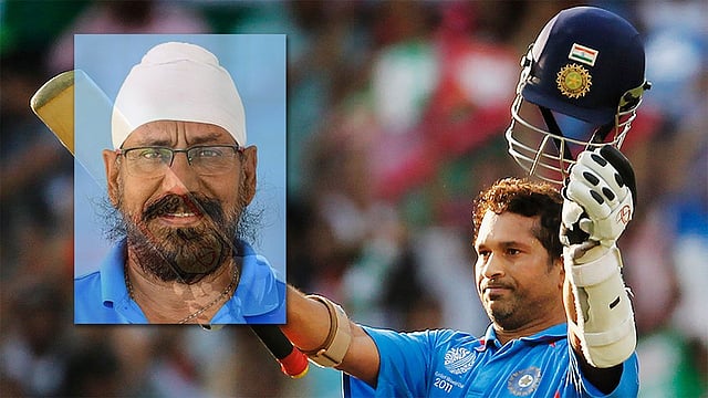 സച്ചിൻ ടെൻഡുൽക്കർ,ഉൾചിത്രത്തിൽ ഗുർശരൺ സിങ്.