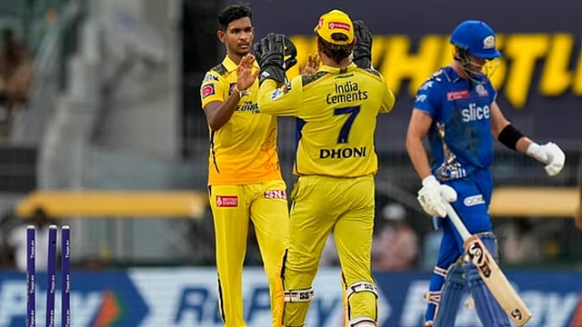 ചെന്നൈ: അവസാന രണ്ട് മത്സരങ്ങളിൽ 200 മേലെ സ്കോർ ചേസ് ചെയ്ത് ഹീറോകളായി ചെന്നൈയുടെ മടയിലെത്തിയ മുംബൈ ഇന്ത്യൻസിനെ വീഴ്ത്തി ചെന്നൈ സൂപ്പര് കിങ്സ്. 140 റണ്സ് വിജയലക്ഷ്യവുമായി ഇറങ്ങിയ ചെന്നൈ 17.4 ഓവറില് നാല് വിക്കറ്റ് മാത്രം നഷ്ടപ്പെടുത്തി അനായാസം വിജയകടമ്പ കടന്നു. സൂപ്പര് കിങ്സിനായി ഡെവോണ് കോണ്വെ (42 പന്തില് 44) മുന്നില് നിന്ന് നയിച്ചു. മത്സരത്തില് ആറ് വിക്കറ്റിന്റെ മിന്നും വിജയത്തോടെ ഐപിഎല് പോയിന്റ് പട്ടികയില് ചെന്നൈ രണ്ടാമതെത്തി. ആദ്യം ബാറ്റ് ചെയ്ത മുംബൈക്ക് എട്ട് വിക്കറ്റ് നഷ്ടത്തില് 139 റണ്സെടുക്കാനേ കഴിഞ്ഞുള്ളൂ. 64 റണ്സെടുത്ത നെഹാല് വധേരയാണ് മുംബൈയെ രക്ഷിച്ച് നിര്ത്തിയത്. സൂര്യകുമാര് യാദവിന്റെ 26 റണ്സും നിര്ണായകമായി. ചെന്നൈക്കായി ശ്രീലങ്കൻ യുവതാരം മതീക്ഷ പതിറാണ മൂന്ന് വിക്കറ്റുകള് നേടി. ദീപക് ചഹാറും തുഷാര് ദേശ്പാണ്ഡെയും രണ്ട് വിക്കറ്റുകള് വീതവും സ്വന്തമാക്കി.