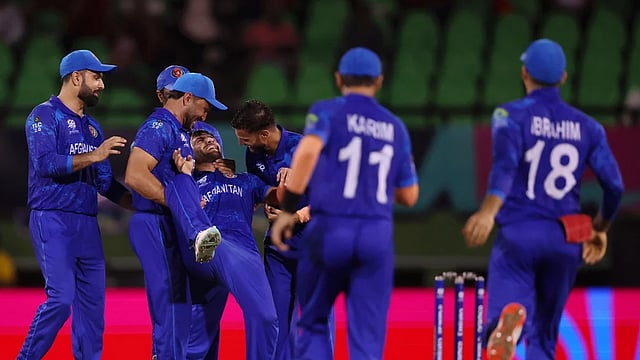 41 പന്തിൽ 44 റൺസെടുത്ത ഇബ്രാഹിം സദ്രാന്റെ വിക്കറ്റാണ് ആദ്യം നഷ്ടമായത്. തുടർന്ന് മൂന്നാം നമ്പറിലേക്കു പ്രമോട്ട് ചെയ്യപ്പെട്ട അസ്മത്തുള്ള ഒമർസായ് 13 പന്തിൽ 22 റൺസുമായി സ്കോറിങ്ങിനു വേഗം കൂട്ടി. പക്ഷേ, ഒമർസായിക്കു പിന്നാലെ മുഹമ്മദ് നബിയും (0) ക്യാപ്റ്റൻ റാഷിദ് ഖാനും (6) ക്ഷണത്തിൽ മടങ്ങി.