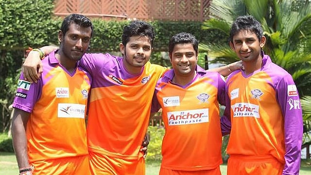 കൊച്ചി ടസ്കേഴ്സ് കേരളയിൽ കളിച്ച മലയാളികൾ- പ്രശാന്ത് പരമേശ്വരൻ, എസ്. ശ്രീശാന്ത്, പി. പ്രശാന്ത്, റൈഫി വിൻസന്റ് ഗോമസ്.
