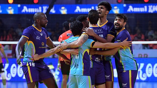 പ്രൈം വോളിബോള് ലീഗില് വെള്ളിയാഴ്ച്ച നടന്ന ഡല്ഹി തൂഫാന്സ്-ഹൈദരാബാദ് ബ്ലാക്ഹോക്സ് മത്സരത്തില് നിന്ന്.