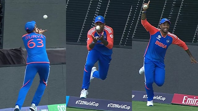 ടി20 ലോകകപ്പ് ഫൈനലിൽ ഡേവിഡ് മില്ലറെ പുറത്താക്കാൻ സൂര്യകുമാർ യാദവ് എടുത്ത ക്യാച്ച്.