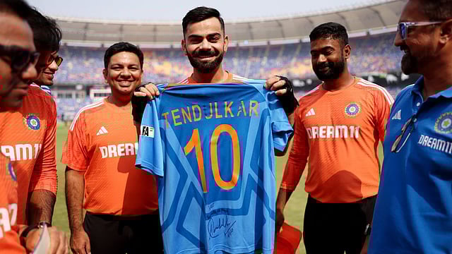 പ്രചോദിപ്പിക്കുന്ന കുറിപ്പും ജേഴ്സിയില് എഴുതി ചേര്ത്താണ് സച്ചിന് ഒപ്പിട്ട് തന്റെ ജേഴ്സി സമ്മാനിച്ചത്. "വിരാട്... താങ്കള് ഞങ്ങളുടെ അഭിമാനമാണ്'- എന്നാണ് സച്ചിന് കുറിച്ചത്.