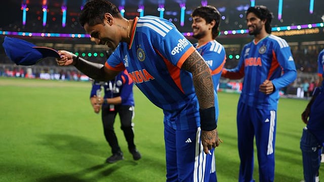 ടി20 ലോകകപ്പ് സെമിയിൽ ഇടിവെട്ട് ബാറ്റിങ്ങിലൂടെ ഇന്ത്യക്ക് വിജയം സമ്മാനിച്ച സഞ്ജു സാംസണ് മുന്നിൽ തൊപ്പിയൂരി തലകുനിച്ച് വണങ്ങി ക്യാപ്റ്റൻ സൂര്യകുമാർ യാദവ്. 50 ബോളിൽ 97 റൺസ് അടിച്ചു കൂട്ടിയാണ് സഞ്ജു തിളങ്ങിയത്. കളി ജയിച്ചതിനു ശേഷം പിച്ചിൽ ഗ്രൗണ്ടിൽ നിന്ന് മടങ്ങിയെത്തിയ സഞ്ജുവിന് മുന്നിൽ സൂര്യകുമാർ യാദവ് തൊപ്പിയൂരി തല കുനിക്കുകയായിരുന്നു. ആലിംഗനത്തിലൂടെയാണ് കോച്ച് ഗൗതം ഗംഭീർ സഞ്ജുവിനെ അഭിനന്ദിച്ചത്. ഇരുവരും സഞ്ജുവിനെ അഭിനന്ദിക്കുന്ന വിഡിയോ സമൂഹമാധ്യമങ്ങളിൽ വൈറലാണ്.