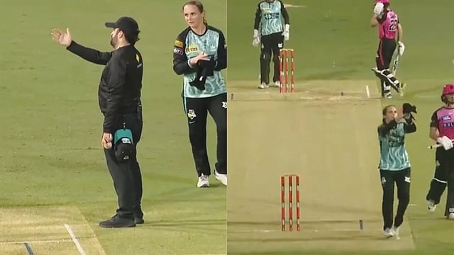 മറുപടി ബാറ്റിങ്ങിൽ സിഡ്നി സിക്സേഴ്സ് ബാറ്റ് ചെയ്യുന്നു. 10-ാം ഓവറിലെ രണ്ടാം പന്തിലാണ് സംഭവം. അമേലിയ കെര് എറിഞ്ഞ പന്തില് ആഷ്ലീ ഗാര്ഡ്നര് ലോങ് ഓണിലേക്ക് അടിച്ച് സിംഗിള് നേടി. എന്നാല് ഫീല്ഡര് എടുത്തെറിഞ്ഞ പന്ത് പിടിക്കവേ അമേലിയ കെറിന്റെ കൈകളില് ഒരു ടൗവല് ഉണ്ടായിരുന്നു. പിന്നാലെ മത്സരത്തില് ഇടപെട്ട അമ്പയര് അഞ്ച് റണ്സ് പെനാല്റ്റി നല്കാനായി സിഗ്നല് കാണിച്ചു.