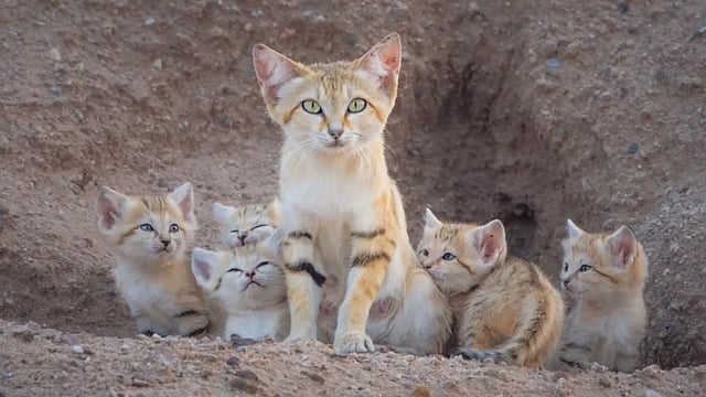 കുവൈറ്റ് മരുഭൂമിയിൽ കണ്ടെത്തിയ മണൽപ്പൂച്ച കുടുംബം.