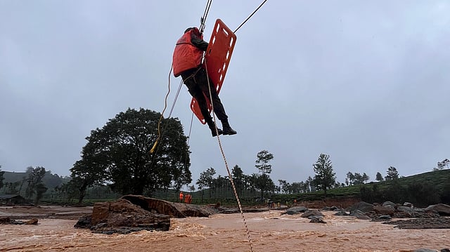 കോഴിക്കോട്ടുനിന്നെത്തിയ 122 ഇൻഫൻട്രി ബറ്റാലിയൻ മദ്രാസ്, വയനാട്ടിലെ ചൂരൽമലയിൽ രക്ഷാപ്രവർത്തനം നടത്തുന്നതിന്റെ ദൃശ്യങ്ങൾ