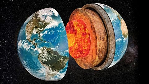 മെൽബൺ: ഭൂവൽക്കം, മാന്റിൽ, പുറക്കാമ്പ്, അകക്കാമ്പ്... നാലു ഭാഗങ്ങൾ ചേർന്നതാണു ഭൂമി എന്നാണ് നാം ഇതുവരെ അറിഞ്ഞിരുന്നത്. എന്നാൽ, അഞ്ചാമതൊരു പാളി കൂടി ഭൗമാന്തർഭാഗത്തുണ്ടെന്ന് ഓസ്ട്രേലിയൻ നാഷണൽ യൂണിവേഴ്സിറ്റിയിലെ ഗവേഷകർ കണ്ടെത്തിയിരിക്കുന്നു. 6000 ഡിഗ്രി സെൽഷ്യസിലേറെ താപനിലയുള്ള അകക്കാമ്പിനുള്ളിൽ ഖരലോഹ ഗോളമുണ്ടെന്നാണു ഗവേഷകരുടെ കണ്ടെത്തൽ. ഭൂകമ്പങ്ങൾ പുറപ്പെടുവിച്ച പ്രകമ്പന തരംഗങ്ങളാണ് ഭൗമശാസ്ത്ര പഠനത്തിൽ നിർണായകമാകുന്ന വിവരങ്ങളിലേക്കു നയിച്ചത്.