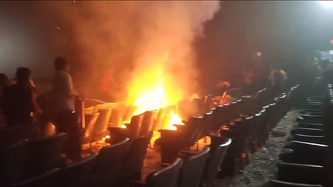 വിജയവാഡയിൽ തീയറ്ററിന് തീ പിടിച്ചു. ജൂനിയർ എൻടിആർ സിനിമയുടെ റീ റിലീസ് ഷോയ്ക്കിടെ ആരാധകർ പടക്കം പൊട്ടിച്ചതിനെ തുടർന്നാണ് തീയറ്ററിന് തീപിടിച്ചത്. ശനിയാഴ്ചയായിരുന്നു സംഭവം. തീപിടിത്തത്തിൽ തിയറ്ററിലെ സീറ്റുകൾ കത്തിനശിച്ചു. ഇതിനെത്തുടർന്ന് റിലീസ് ഷോ നിർത്തിവച്ചു.