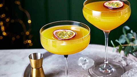 പാഷൻ ഫ്യൂട്ടിന്റെ ഒരു സ്ലൈസ് കൂടി മുകളിൽ വച്ച് അലങ്കരിച്ചാൽ പോൺസ്റ്റാർ മാർട്ടിനി തയാർ.