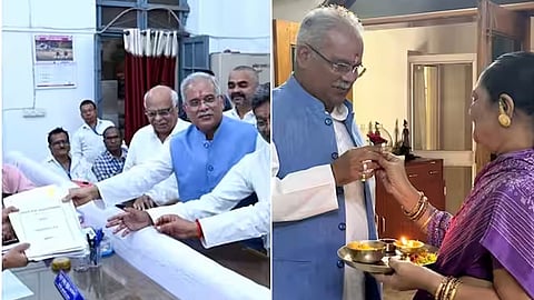റായ്പുർ: നിയമസഭാ തെരഞ്ഞെടുപ്പിൽ മത്സരിക്കുന്നതിനായുള്ള നാമനിർദേശ പത്രിക സമർപ്പിച്ച് ഛത്തീസ്ഗഢ് മുഖ്യമന്ത്രി ഭൂപേഷ് ബഘേൽ. ദുർഗ് ജില്ലയിലെ പഠാൻ മണ്ഡലത്തിൽ നിന്നു തന്നെയാണ് ഇത്തവണയും ബഘേൽ മത്സരിക്കുന്നത്. ദുർഗ് കലക്ട്രേറ്റിലെത്തി നാമനിർദേശ പത്രിക സമർപ്പിക്കുന്ന ചിത്രങ്ങൾ ബഘേൽ എക്സിലൂടെ പങ്കു വച്ചു. സ്പീക്കർ ചരൺദാസ് മഹന്ത്, ആഭ്യന്തര മന്ത്രി താമ്രധ്വജ് സഹു എന്നിവരും ബഘേലിനെ അനുഗമിച്ചിരുന്നു.
