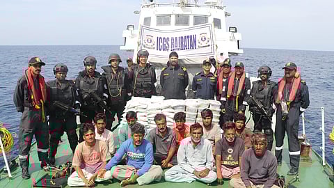 പോർബന്ദർ: കടൽമാർഗം 86 കിലോഗ്രാം ലഹരിമരുന്ന് കടത്താൻ ശ്രമിച്ച പാക്കിസ്ഥാനി ബോട്ട് ഇന്ത്യൻ കോസ്റ്റ് ഗാർഡ് കസ്റ്റഡിയിലെടുത്തു. ഇതിലുണ്ടായിരുന്ന 14 പാക് പൗരൻമാരെ അറസ്റ്റ് ചെയ്തിട്ടുണ്ട്.