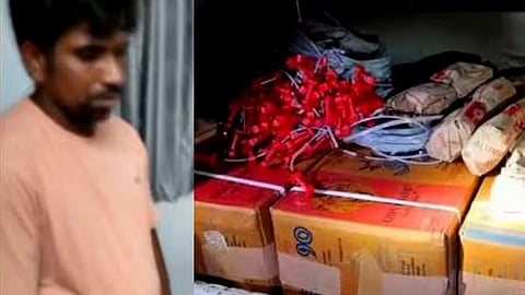 ലഹരി ഇടപാടുമായി ബന്ധപ്പെട്ട് വാഹനം പരിശോധിച്ചപ്പോഴാണ് കാസർഗോഡ് ചെർക്കള കെട്ടുംകല്ലിൽ നിന്നും സ്ഫോടക വസ്തുക്കൾ കണ്ടെത്തിയത്. തുടർന്ന് ഇയാളുടെ വീട്ടിൽ നടത്തിയ പരിശോധനയിലും ജലാറ്റിന് സ്റ്റിക്കുകളും അനുബന്ധ സ്ഫോടക വസ്തുക്കളുടെ ശേഖരം കണ്ടെത്തി.