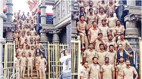 ഡ്യൂട്ടിക്കു ശേഷം തിങ്കളാഴ്ച മടങ്ങിയ ആദ്യ ബാച്ചിലെ പൊലീസുകാർ ശനിയാഴ്ച ഉച്ചയ്ക്ക് ഒരു മണിക്ക് നടയടച്ച ശേഷം പടിയുടെ താഴെ മുതൽ വരി വരിയായി നിന്ന് ഫോട്ടൊ എടുക്കുകയായിരുന്നു. ഈ ചിത്രങ്ങള് സമൂഹമാധ്യമങ്ങളിൽ വ്യാപകമായി പ്രചരിച്ചിരുന്നു.