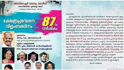 ഇന്നലെ നടന്ന നവീകരിച്ച ക്ഷേത്രപ്രവേശന വിളംബര സ്മാരകത്തിന്റെ സമർപ്പണച്ചടങ്ങിൽ ബോർഡിന്റെ സാംസ്കാരിക - പുരാവസ്തു വിഭാഗം മേധാവി ബി. മധുസൂദനൻ നായരും പങ്കെടുത്തില്ല.