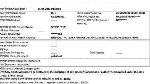 പാലക്കാട് കസബ പൊലീസ് സ്റ്റേഷനിലെത്തി 1000 രൂപ പിഴ ഒടുക്കണമെന്നാവശ്യപ്പെട്ടാണ് നോട്ടീസ്. ക്യാമറ ചിത്രത്തിൽ ഇരുചക്രവാഹനത്തിന്റെ നമ്പറും പിഴയടക്കാൻ പറയുന്ന ഭാഗത്ത് സുനിഷീന്റെ ട്രാവലറിന്റെ രജിസ്ട്രേഷൻ നമ്പറും ഒപ്പം നിർത്താതെ പോയെന്ന രീതിയിലുള്ള നിയമലംഘനവുമാണ് അടയാളപ്പെടുത്തിയിരിക്കുന്നത്.