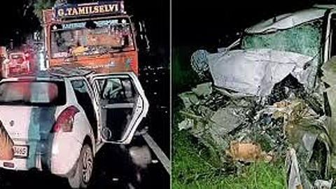 പാലക്കാട്: പാലക്കാട് കല്ലടിക്കോട് കാറും ലോറിയും കൂട്ടിയിടിച്ച് അഞ്ച് യുവാക്കൾക്ക് ദാരുണാന്ത്യം. കോങ്ങാട് സ്വദേശികളായ വിജേഷ്(35), വിഷ്ണു(28), മുഹമ്മദ് അഫ്സൽ(17), വീണ്ടപ്പാറ സ്വദേശി രമേശ്(31) എന്നിവരാണ് മരിച്ചത്. മരിച്ച ഒരാളെ തിരിച്ചറിഞ്ഞിട്ടില്ല. കല്ലടിക്കോട് അയ്യപ്പൻ കാവിനു സമീപം ചൊവ്വാഴ്ച രാത്രി 11 മണിയോടെയാണ് അപകടം.