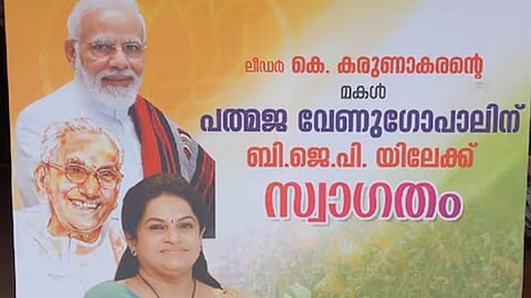 പത്മജ ബിജെപിയിൽ ചേർന്ന പശ്ചാത്തലത്തിൽ കരുണാകരനെ ബിജെപി രാഷ്ട്രീയമായി ഉപയോഗിക്കരുതെന്നും അത് അനുവദിക്കില്ലെന്ന് കോൺഗ്രസ് നേതാക്കള് നേരത്തേ താക്കീത് ചെയ്തിരുന്നു. എന്നാൽ ഇത് പാടെ തള്ളിയാണ് ബിജെപി നിലമ്പൂർ മുനിസിപ്പൽ കമ്മിറ്റിയാണ് ബോർഡ് സ്ഥാപിച്ചത്. ബോര്ഡിനെതിരെ യൂത്ത് കോൺഗ്രസ് നിലമ്പൂർ പൊലീസിന് പരാതി നൽകിയിരുന്നു. എന്നാല് ഇതിന് പിന്നാലെ കോൺഗ്രസ് പ്രവര്ത്തകര് തന്നെ ഫ്ലക്സ് ബോര്ഡ് വലിച്ചുകീറി നശിപ്പിച്ചു. പ്രവര്ത്തകര് പ്രകടനവുമായി എത്തിയാണ് ബോര്ഡ് നശിപ്പിച്ചത്
