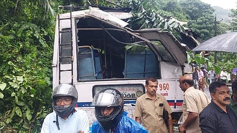 കൊച്ചി - ധനുഷ്കോടി ദേശീയ പാതയിൽ മരംവീണ് തകർന്ന കെഎസ്ആർടിസി ബസ്