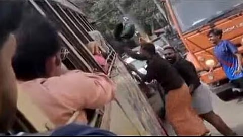 ഒല്ലൂർ സെറ്ററിൽ ഇന്ന് രാവിലെയാണ് സംഭവം. ഒല്ലൂര് ജങ്ഷനില് സാധാരണയായി രാവിലകളിൽ വലിയ ഗതാഗതക്കുരുക്ക് ഉണ്ടാകാറുണ്ട്. ഈ സമയത്ത് എത്തിയ കെഎസ്ആര്ടിസി ബസ് ബ്ലോക്കില് കിടക്കാതെ എല്ലാ വാഹനങ്ങളെയും ഓവര്ടേക്ക് ചെയ്ത് റോങ്ങ് സൈഡിലൂടെ മുന്ഭാഗത്തേക്ക് എത്തി. ഇതിനിടെ എതിര്ഭാഗത്ത് കൂടി വന്ന ലോറി ഡ്രൈവർ ഇതുമായി ബന്ധപ്പെട്ട് വാക്കേറ്റവും പിന്നീട് കൈയ്യാങ്കളിയുമായി. ഇതിനിടെ ബൈക്ക് യാത്രികന് കൈയിലുളള ഹെല്മറ്റ് കൊണ്ട് ഡ്രൈവറുടെ മുഖത്ത് അടിക്കുകയായിരുന്നു. മർദനത്തിന്റെ ദൃശ്യങ്ങൾ പുറത്തുവന്നിട്ടുണ്ട്.