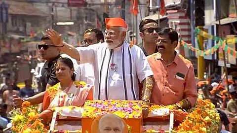 പാലക്കാട്: പ്രധാനമന്ത്രി നരേന്ദ്രമോദിയുടെ റോഡ്ഷോ പാലക്കാട് അഞ്ചുവിളക്കിൽ നിന്നും ആരംഭിച്ചു. തുറന്ന വാഹനത്തിൽ മോദിക്കൊപ്പം സംസ്ഥാന അധ്യക്ഷൻ കെ സുരേന്ദ്രനും പാലക്കാട് ബിജെപി സ്ഥാനാർഥി സി. കൃഷ്ണകുമാറും മലപ്പുറം സ്ഥാനാർഥി നിവേദിതാ സുബ്രഹാമണ്യനുമുണ്ട്.