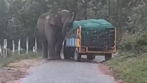 മൂന്നാർ: മൂന്നാർ നെറ്റിമേട് ഭാഗത്തിറങ്ങിയ കാട്ടാന പടയപ്പ തേയില കൊളുന്തുമായി പോയ വാഹനം തടഞ്ഞു. ആനയെ കണ്ടതോടെ ഡ്രൈവർ വാഹനത്തിൽ നിന്നിറങ്ങിയോടി. വാഹനത്തെ ഒന്നും ചെയ്യരുതെന്ന് ഡ്രൈവർ ഉറക്കെ പറയുന്നുണ്ട്.