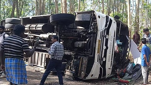 40 ഓളം പേർ ബസിലുണ്ടായിരുന്നതായാണ് വിവരം. 15 പേർക്ക് പരുക്കേറ്റു. പരുക്കേറ്റ മറ്റുള്ളവരുടെ ആരോഗ്യനില ഗുരുതരമല്ലെന്നാണ് വിവരം. കേരള രജിസ്ട്രേഷനുള്ള ബസാണ് കുണ്ടള ഡാം സന്ദർശിക്കാൻ പോകുന്നതിനിടെ എക്കോ പോയിന്റിന് സമീപം നിയന്ത്രണം വിട്ട് മറിഞ്ഞത്.