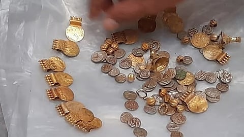 പുരാവസ്തുക്കളിൽ അറക്കൽ രാജവംശം ഉപയോഗിച്ച നാണയങ്ങളും ഇൻഡോ ഫ്രഞ്ച് നാണയവും വീരരായൻ പണവും ഉൾപ്പെടുന്നു. വെനീസിലെ 3 പ്രഭുക്കന്മാരുടെ കാലത്തെ സ്വർണനാണയങ്ങളാണ് ആഭരണങ്ങൾ ആക്കി മാറ്റിയത്. ഇവ പതിനേഴ് പതിനെട്ട് നൂറ്റാണ്ടിൽ വെനീഷ്യൽ നാണയങ്ങളാണ് കാശിമാലയിൽ പയോഗിച്ചതാണെന്നും പുരാവസ്തു വകുപ്പ് അധികൃതർ പറഞ്ഞു. നിധിയിലെ വെള്ളിനാണയങ്ങൾ 3 തരം. ആദ്യത്തേത് കണ്ണൂർ അറക്കൽ രാജവംശം ഉപയോഗിച്ച കണ്ണൂർ പണം. ആലിരാജാവിന്റെ കാലത്തുള്ളവ. 2 നൂറ്റാണ്ട് പഴക്കമുള്ള കണ്ണൂർ പണമാണ് കൂട്ടത്തിൽ ഏറ്റവും പുതിയത്. 2 വെളളി നാണയങ്ങൾ വീരരായൻ പണം. അതായത് സാമൂതിരി കാലത്തുളളത്.