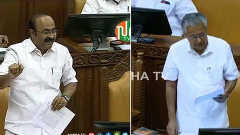 അതേസമയം, പ്രതിപക്ഷ നേതാവിന്റെ ആക്ഷേപകരമായ പരാമര്ശങ്ങള് സഭാരേഖകളില് ഉണ്ടാകാന് പാടില്ലെന്ന് മന്ത്രി എം.ബി. രാജേഷ് ആവശ്യപ്പെട്ടു. ഇതോടെ പ്രതിപക്ഷവും ഭരണ-പക്ഷവും നടുത്തളത്തിലേക്കെത്തി വാക്പോരിലേര്പ്പെട്ടു. പ്രതിപക്ഷാംഗങ്ങള് സ്പീക്കറുടെ ഡയസിലേക്കടക്കം കയറാന് ശ്രമിക്കുകയും ചേംബറിന് മുന്നില് ബഹളം വയ്ക്കുകയും ചെയ്തു. അടിയന്തര പ്രമേയത്തിന് അനുമതി നിഷേധിച്ചതിന് ശേഷവും പ്രതിപക്ഷം ഇറങ്ങിപ്പോകാതെ അരമണിക്കൂറോളം പ്രതിഷേധിച്ചതോടെ സഭാനടപടികള് വെട്ടിച്ചുരുക്കി സ്പീക്കര് സഭ പിരിച്ചുവിട്ടു.