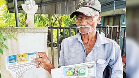 പാലക്കാട് : കൊല്ലങ്കോടിൽ കാഴ്ചപരിമിതനായ ലോട്ടറിവിൽപ്പനത്തൊഴിലാളിയെ കബളിപ്പിച്ച് 50 രൂപയുടെ 90 ലോട്ടറിടിക്കറ്റുകളുമായി യുവാവ് മുങ്ങി. കൊല്ലങ്കോട് കുറ്റിപ്പാടം സ്വദേശി മണികണ്ഠന്റെ (58) കൈയിൽനിന്നാണ് അപരിചിതനായ യുവാവ് ടിക്കറ്റുകൾ കൈക്കലാക്കി മുങ്ങിയത്. ബുധനാഴ്ച രാവിലെ പത്തരയോടെ വടവന്നൂർ കൂത്തമ്പാക്ക് ചായക്കടയുടെ മുന്നിലാണ് തട്ടിപ്പുനടന്നത്. മണികണ്ഠൻ ടിക്കറ്റ് വിൽക്കുന്നതിനിടെയാണ് മറ്റൊരു ലോട്ടറി വിൽപ്പനക്കാരൻ എന്നപേരിൽ അപരിചിതനെത്തിയത്.