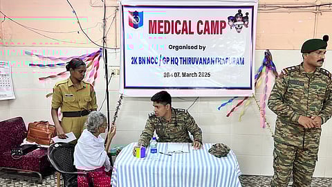 പൂജപ്പുര: അന്താരാഷ്ട്ര വനിതാ ദിനത്തിന്റെ ഭാഗമായി 2 കേരള എൻ സി സി ബറ്റാലിയൻ നിരാലംബരായ അമ്മമാർക്ക് വൈദ്യസഹായം എന്ന ആശയവുമായി മെഡിക്കൽ ക്യാമ്പ് സംഘടിപ്പിച്ചു. വ്യാഴാഴ്ച രാവിലെ 9 30 ന് പൂജപ്പുരയിൽ അമ്മമാരുടെ വൃദ്ധസദനത്തിൽ വച്ചു നടന്ന ചടങ്ങ് കമാൻഡിംഗ് ഓഫീസർ കേണൽ ജയശങ്കർ ചൗധരി ഉദ്ഘാടനം ചെയ്തു.