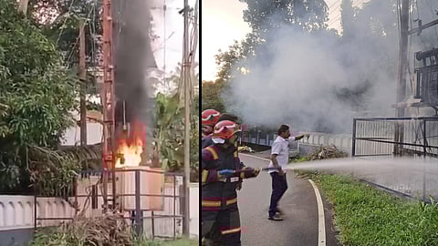 കോതമംഗലം: കുത്തുകുഴി-കുടമുണ്ട റോഡിൽ മാരമംഗലം സർക്കാർ സ്കൂളിന് സമീപം സ്ഥാപിച്ചിരുന്ന ട്രാൻസ്ഫോർമറിന് തീപിടിച്ചു. ബുധനാഴ്ച്ച വൈകുന്നേരം 6.30നായിരുന്നു സംഭവം. കെഎസ്ഇ ബിയുടെ 100 കെവിഎ ട്രാൻസ്ഫോർമറാണ് കത്തിയത്. കോതമംഗലത്തുനിന്ന് അഗ്നിരക്ഷാസേനയെത്തിയാണ് തീയണച്ചത്. നിരവധി വാഹനങ്ങൾ സഞ്ചരിച്ചുകൊണ്ടിരിക്കുന്നതിനിടെയാണ് സംഭവം.