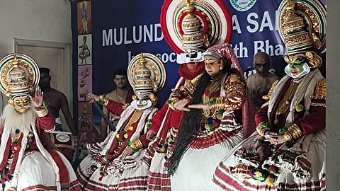 ദുര്യോധനനായി കലാക്ഷേത്രം രഞ്ജിഷ് നായരും രൗദ്രഭീമനായി കലാമണ്ഡലം ഗോപാലകൃഷ്ണനും ദുശ്ശാസനനായി കലാനിലയം അനിൽകുമാറും അരങ്ങിൽ മഹാഭാരതത്തിലെ ദുര്യോധനവധം കഥ ആടിത്തകർത്തപ്പോൾ, ഹാളിൽ തിങ്ങി നിറഞ്ഞ മുളുണ്ടിലെ ജനങ്ങൾക്ക് കഥകളി വിസ്മയക്കാഴ്ച്ചയായി മാറി.
