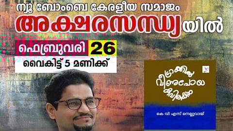 നവി മുംബൈ: ന്യൂ ബോംബെ കേരളീയ സമാജം അക്ഷരസന്ധ്യ യിൽ നാളെ വൈകിട്ട് 5 മണിക്ക് കെ. വി.എസ് നെല്ലുവായ് യുടെ ട്രാക്കിൽ വീണുപോയ കവിതകൾ എന്ന കവിതാ സമാഹാരത്തിന്റെ പ്രകാശനവും ചർച്ചയും നടക്കുന്നു.