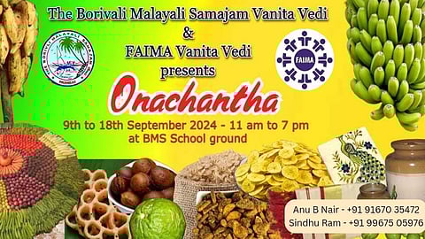 മുംബൈ: ഫെയ്മ മഹാരാഷ്ട്ര വനിതാവേദിയും ബോറിവിലി മലയാളി സമാജവും ഒരുക്കുന്ന ഓണച്ചന്ത സെപ്റ്റംബർ 9 ന് ആരംഭിക്കുന്നു.ബോറിവിലി മലയാളി സമാജം പരിസരത്ത് സെപ്റ്റംബർ 9 മുതൽ 18 വരെയാണ് ഓണച്ചന്ത നടത്തപെടുന്നത്.